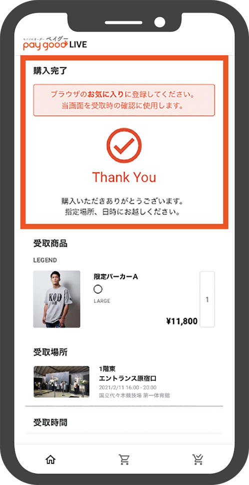 ・商品の受け取りはスマートフォンの画面と引き換えになるため、スマートフォンを忘れた場合商品は受け取れません。